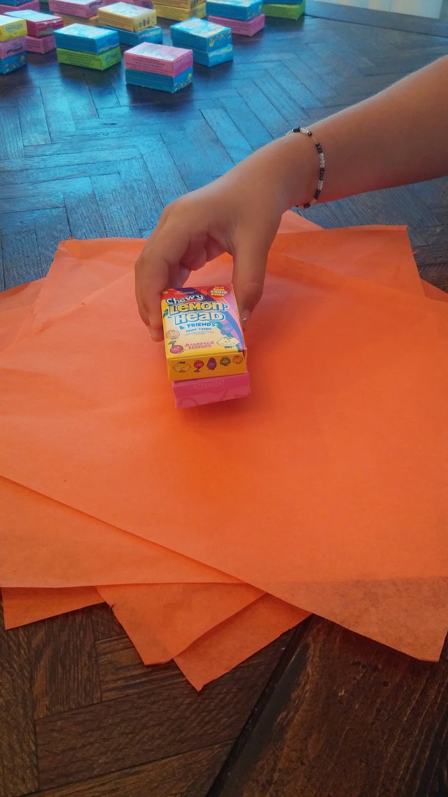 Finally fall is here! I love fall and everything that comes with it, the leaves changing color, the chill in the air, thanksgiving, halloween, boots. So with the weather being chilly I had an itch to do something crafty, thankfully I have a 8 year old daughter that is always ready and willing. Today's project was tissue pumpkins for my daughters class, it is a cute way for her to hand out her halloween candy, its easy enough for her to do herself and I already had everything I needed in the house.